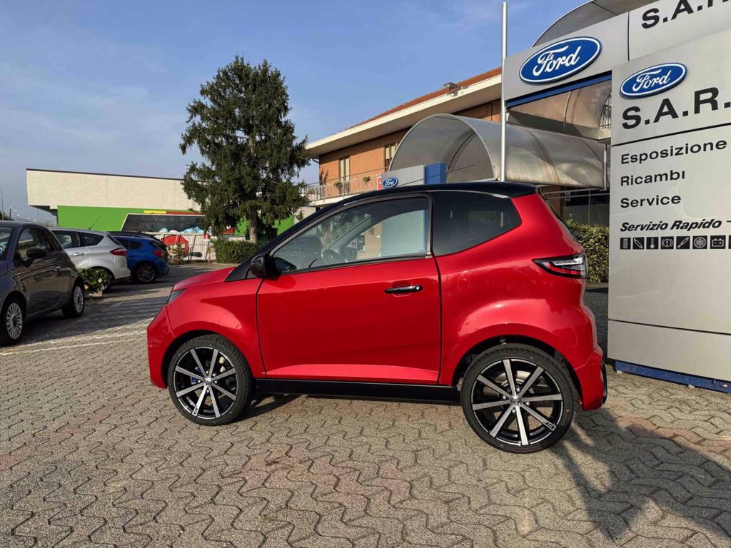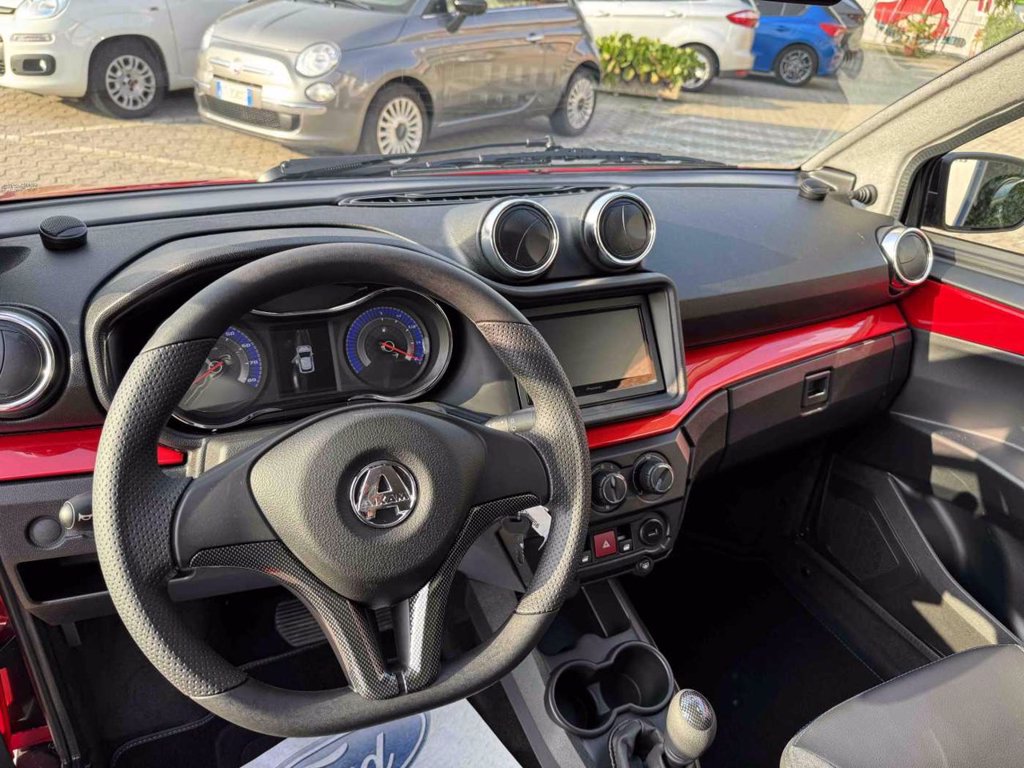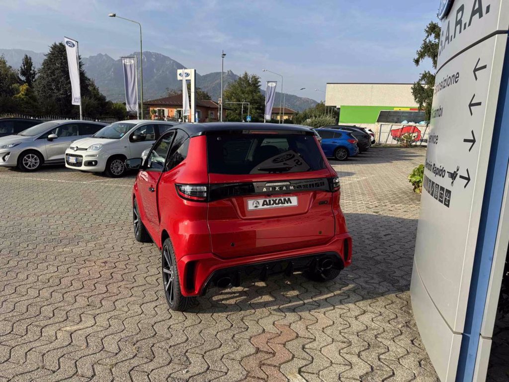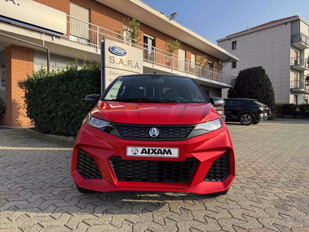 alzavetri elettrico, chiusura centralizzata con telecomando, Tablet touch 7" con Bluetooth, retrocamera e sistema compatibile con Android/Apple car play, sensori retromarcia, Impianto amplificazione audio Aixam Concert con 6 altoparlanti (2x650W di potenza massima), lunotto termico, cerchi in lega da 16'', motore Kubota diesel 480 cc - 6 kw - Euro 5, interni colore carrozzeria e selleria in ecopelle nera, sedili ribaltabili, spoiler posteriore